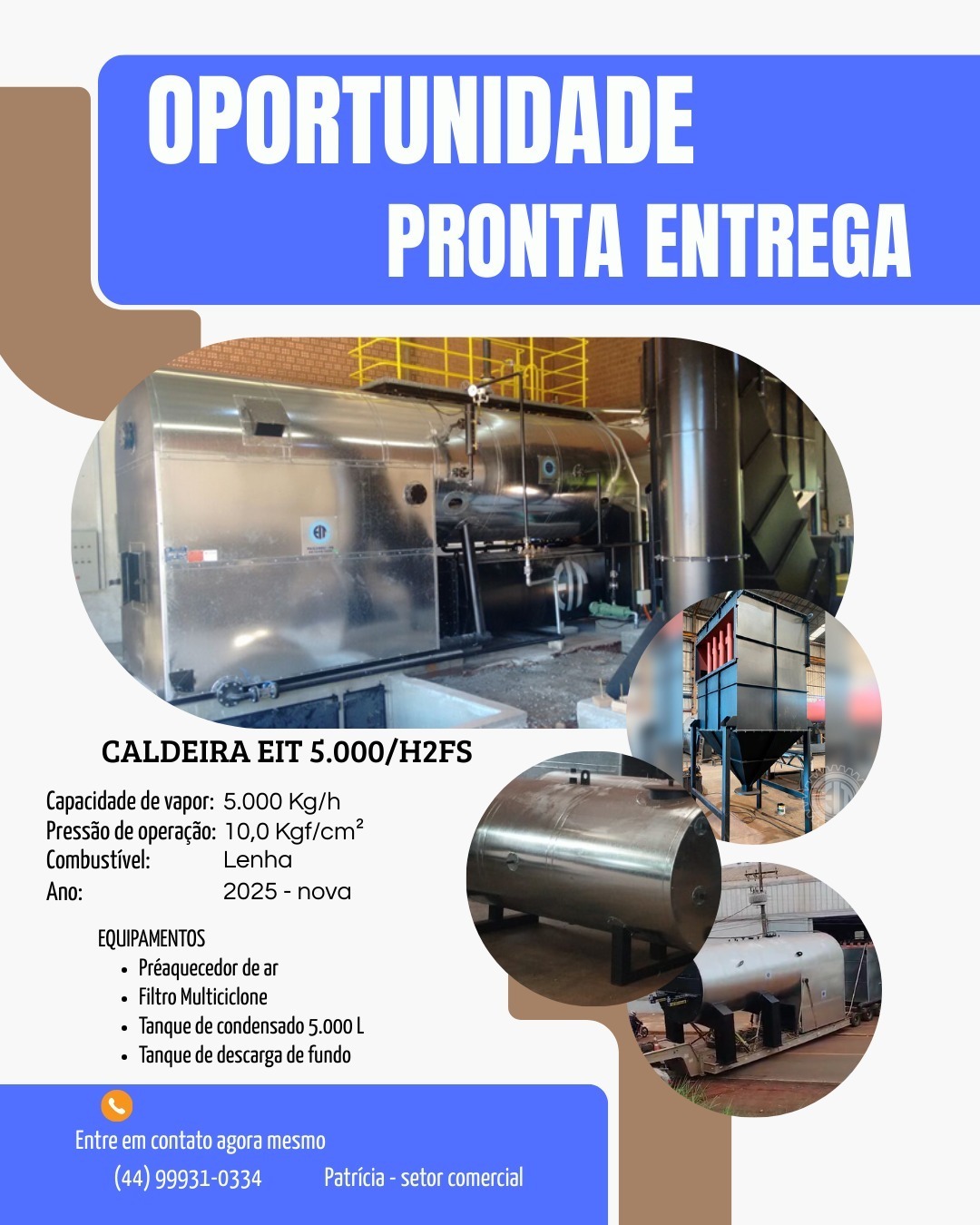 Caldeira EIT 5.000 kgh Lenha 2025 – NOVA